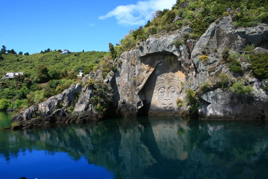 カヤックやクルーズでしか見に行くことの出来ない巨大マオリ彫刻