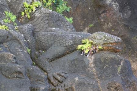 マオリ伝説の英雄が彫られた岩壁の彫刻
