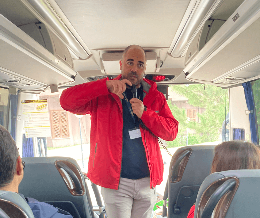 日本語現地添乗係員がバスに同乗して、観光地や食事場所、宿泊ホテルなどの案内を日本語で行います。