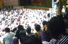 それほど広くない境内は、いっぱいにシートが敷かれていた。見物席は村人とその他の人の席が分けてあるようだったが、私たちは前の方の村人席に案内された。