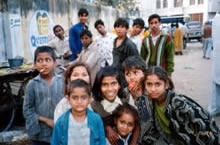 | 眼前の光景は、思わず声に出るほどの凄まじさだった。バス、タクシー、乗用車、サイクルリクシャー、オートリクシャー、リヤカー、自転車、といった車輪の付いたありとあらゆる乗り物が、信号もない大通りを埃を舞い上げながらやたらとスピードを上げて走行していた。 |