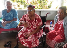 日本がパラオにもたらした影響に思いを巡らしていた頃、忘れられない出会いが訪れる。アンケートをさせていただこうと家の中をのぞくと、ベッドにおばあさんが横たわっていた。日本から来た学生である、と自己紹介をすると、おばあさんはぱっと目を見開き、「わたし、マツコさんです。」とはっきりとおっしゃった。その後もすらすら口をついて出てくる日本語に、呆気にとられてしまった。「おあがりなさい」というお言葉に甘え、木造の和風造りのお宅にお邪魔した。マツコさんは「レモンスイ」を出してくれ、昔話を聞かせてくれた。聞き足りない私たちは、日を改めてお泊まりにうかがい、夜な夜なお話を伺った。マツコさんは公学校に5年通い、一生懸命日本語を覚えたそうだ。島を半周する遠足が楽しかったこと、大勢の兵隊さんがいたこと、日本人のご主人のもとで働き、日本に連れて行ってもらえたこと。驚くほどはっきりした日本語で、当時のことを教えてくださった。最後に、大切に保管してあっただろう、クラス写真を見せてくれた。男の子は坊主、女の子は皆そろいのおかっぱ髪、制服の正面には、全員、日本人の名前がカタカナで書かれている。マツコと書かれた少女は、確かに、今目の前にいる老婆にちがいないのだった。「またいつでもお茶を飲みにいらっしゃい。ここで毎日、窓から外を見ていますから。」まるで、日本の田舎でおばあちゃんと話しているかのような安心感を覚えた。いつしか、パラオは私の第二の故郷のようになっていた。