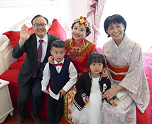 結婚式当日、披露宴はホテルで昼に行われるが、午前中は新婦の家で中国独特の風習があるという。私は早朝から慣れない着物の着付けに奮闘して出かけた。
