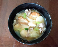 そして、はっとに欠かせない物は、あぶらふです。あぶらふは、冷蔵庫がなかった時代に、腐りやすい油揚げの代わりになるように発明されたものです。登米市だけの食べ物です。フランスパンのように大きく、細長い形をしています。それを輪切りにして、はっとに入れます。普通のふよりも歯ごたえがあります。分厚いあぶらふに汁が染み込み、口に含むと、濃厚な味が口いっぱいに広がります。本物の油揚げよりも、ずっとおいしいです。