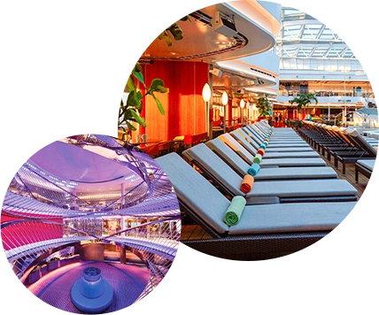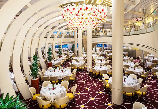 メインダイニング「ザ・ダイニングルーム」では、国際的な美食団体ラ・シェーヌ・デ・ロティスール協会のシェフが監修する伝統料理や創作料理が楽しめます。また、予約制の「ピナクルグリル」では、新鮮なシーフードや高品質なビーフを使用した豪華な料理が提供されます。乗船される船により、イタリア料理の「カナレット」やアジア料理の「タマリンド」など、各国の料理を堪能できる様々なレストランがあります。さらに、ビュッフェスタイルの「リドマーケット」やプールサイドの「ダイブイン」など、カジュアルなダイニングオプションも豊富です。これらの多様なダイニング施設が、クルーズの楽しみを一層引き立てます。