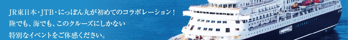 JR東日本、JTB、NIPPPON MARU共同企画 JTBクルーズ 青森港発/東京港着 にっぽん丸で航く 東北DCクルーズ&レール クルーズプラン3泊4日(青森/岩手) 旅行期間:2021年6月16日(水)〜19日(土) JR+クルーズプラン(宿泊プラン/出発日移動プラン/帰着後移動プラン)・乗船前観光付プラン(添乗員同行)もご用意 陸からも、海からも。 復興へと歩みを進める東北の力強い姿と魅力を巡る旅。