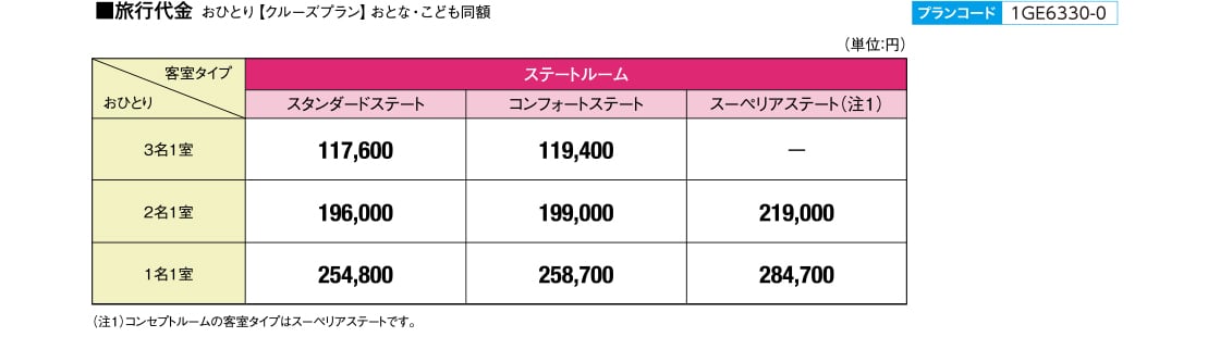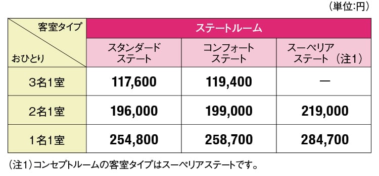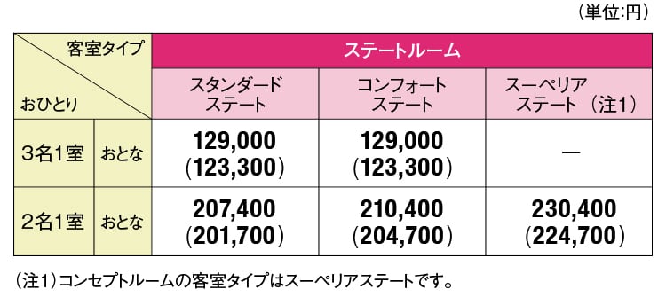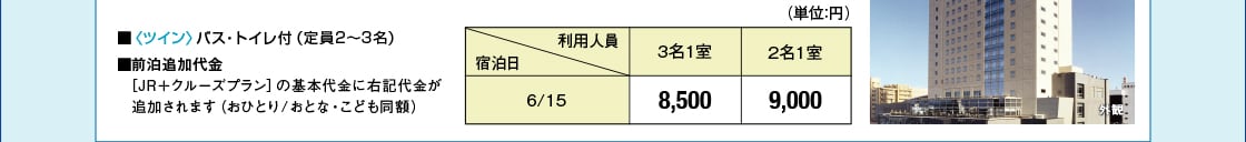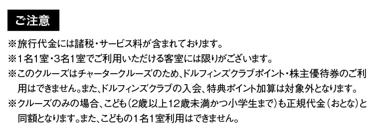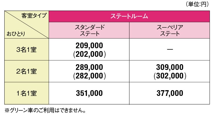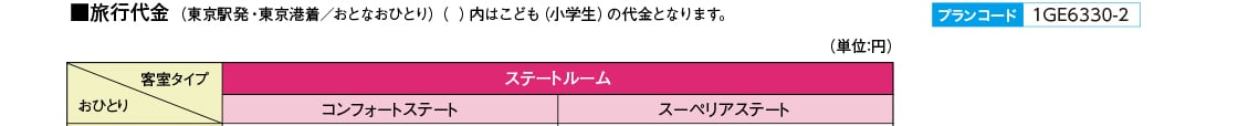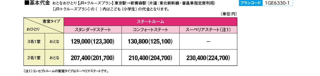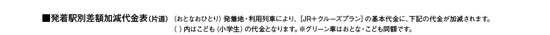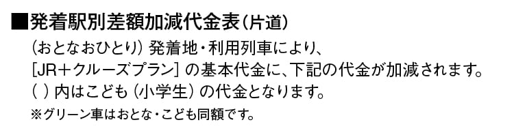 [JR+クルーズプラン]の基本代金に追加されます(おひとり/おとな・こども同額)