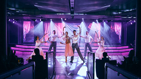 目の前のステージで開催される圧巻のショーやコンサート、そして本格的な落語まで。洋上の非日常をお楽しみください
