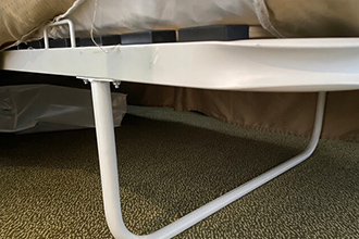 ベッドの下にはスペースがあり、スーツケースの収納などに利⽤できます。