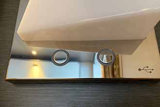 ベッドサイドライトの下にはUSBポートがあり、スマートフォンなどの充電に使うことができます。