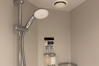 シャワーヘッドは可動式となっております。シャンプーとボディーソープは設置されていますが、トリートメントはございません。