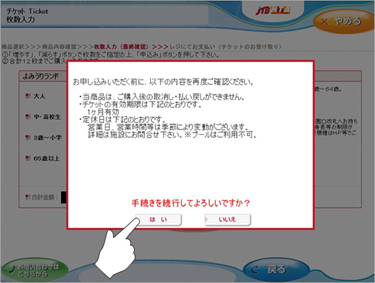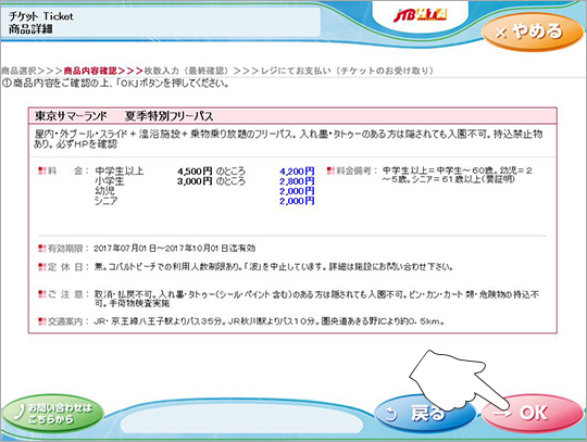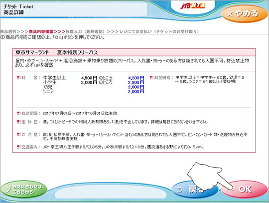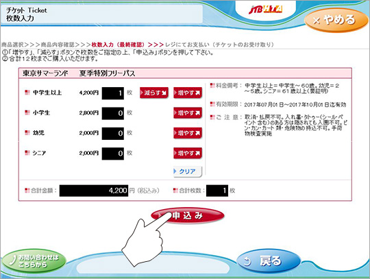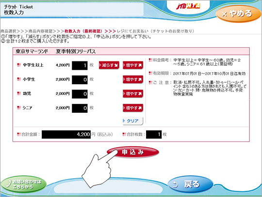ご希望の枚数を入力し、内容・金額を確認の上“申込み”をタッチ。