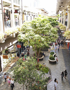 約340を超えるショップ、レストランなどが建ち並ぶ、世界有数の規模を誇るオープンエアのショッピングセンター。