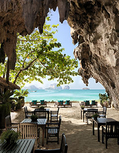 タイ南部にある隠れ家的リゾートで、石灰岩とジャングルに囲まれた秘境の雰囲気が魅力です。クロムアンビーチ、プラナンビーチには多くの観光客が集まり、ロッククライミングなども可能。映画『ザ・ビーチ』が撮影された息をのむような美しさのピピ諸島への拠点です。