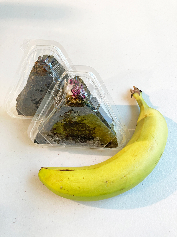 - 肉うどん、おにぎり1個(昆布)、いなり寿司1個、水1本