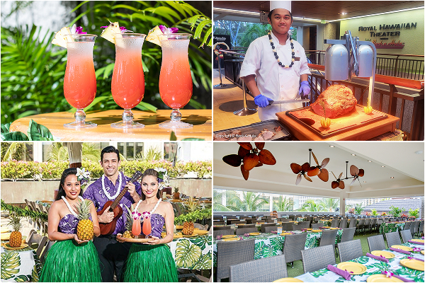 - ローストビーフビュッフェ、フリードリンク(ビール・カクテルなどのお酒含む)、エンターテイメント(フラ・ミュージシャン)