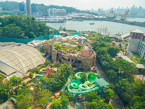 流れるプールやウォータースライダー、海賊船のあるキッズプール、プールバーなど大人も子どもも楽しめるウォーターパーク