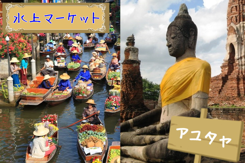 バンコクの北部、世界遺産アユタヤでアユタヤ王朝の遺跡と歴代王の夏の離宮を見学。片道は船に乗って、水上生活や川の両岸の歴史的建造物を観光します。