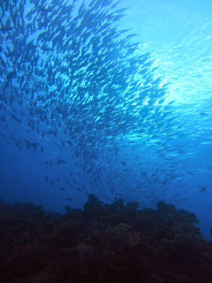 ギンガメの群れ。圧巻です! 透明度も高く最高です。