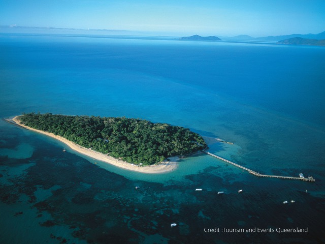 ケアンズから高速艇で約45分のグリーン島は、6000年の時をかけて珊瑚が積もってできた白砂のビーチと遠浅の海に囲まれた島。グラスボトムボートまたはシュノーケリングでサンゴ礁鑑賞をお楽しみいただけます。