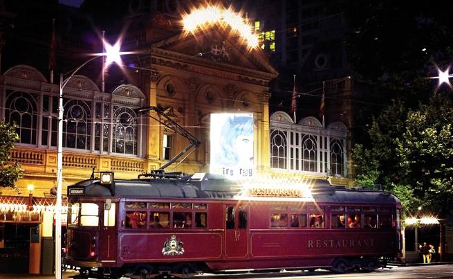 メルボルンのトラムカー(路面電車)レストランで優雅な食事を