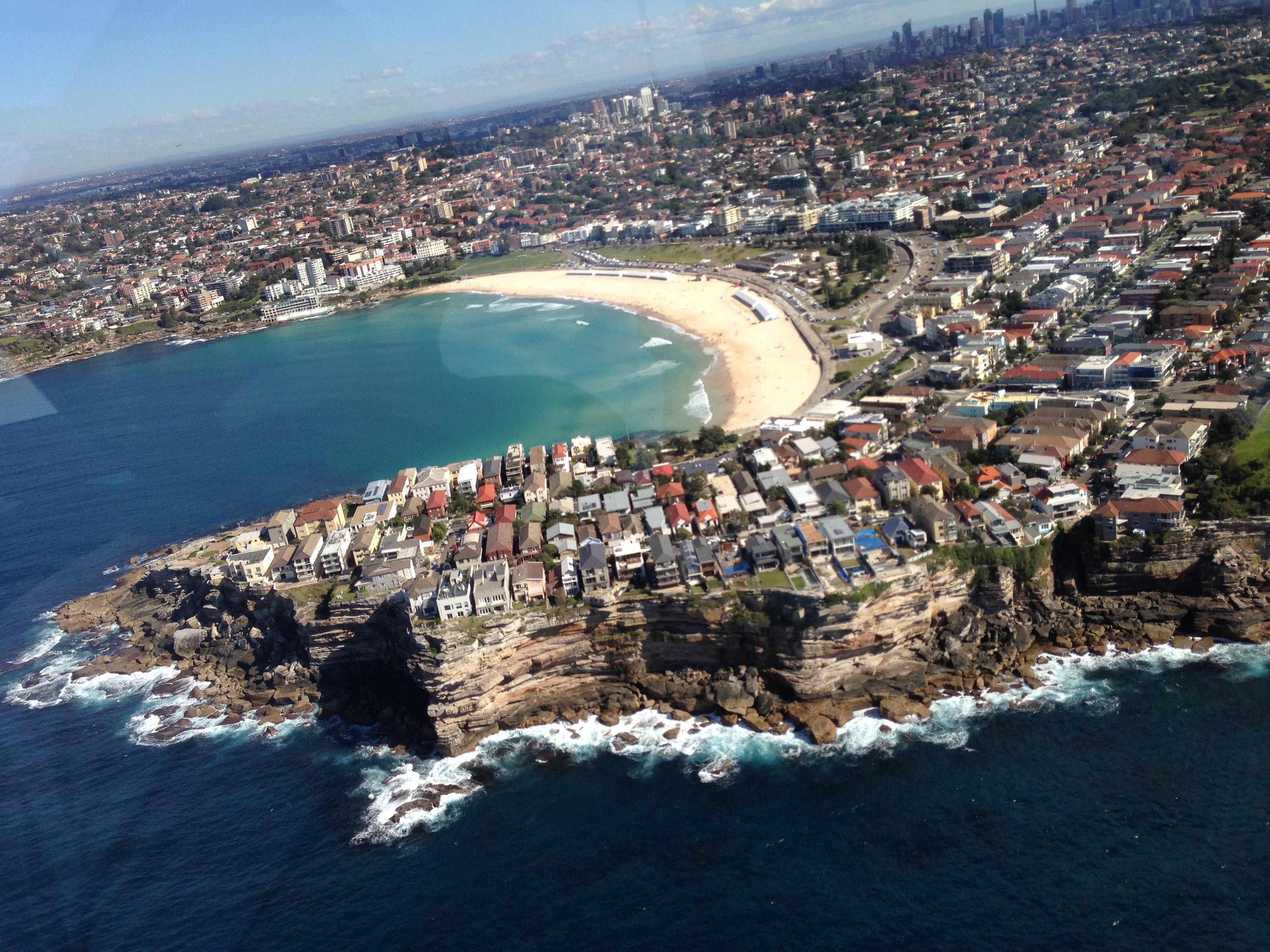 パイロットいわく、天気が良くてラッキーなときはクジラを見ることもできるよ、と言っていました。(私が乗った時は残念ながらクジラに出会えませんでした。)船着場でたくさんの小船やヨットでにぎわうラッシュカッターズベイやダブルベイ、ローズベイ、ワトソンズベイの断崖絶壁、美しいボンダイビーチなど、上空からだと、シドニーの主なベイエリアがいとも簡単に巡れ、海の美しさは格別です。
