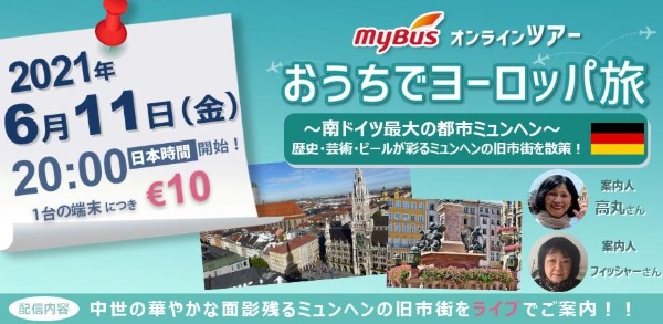 大好評!マイバスヨーロッパがお届けするオンラインツアー&オンライン講座「おうちでヨーロッパ旅」。フランス・イギリス・イタリア・スペイン・ドイツの5ヶ国より《ヨーロッパの今》をオンラインにてお届けしています。