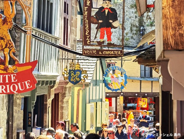 モンサンミッシェルの参道。見学後の散策も楽しい時間!