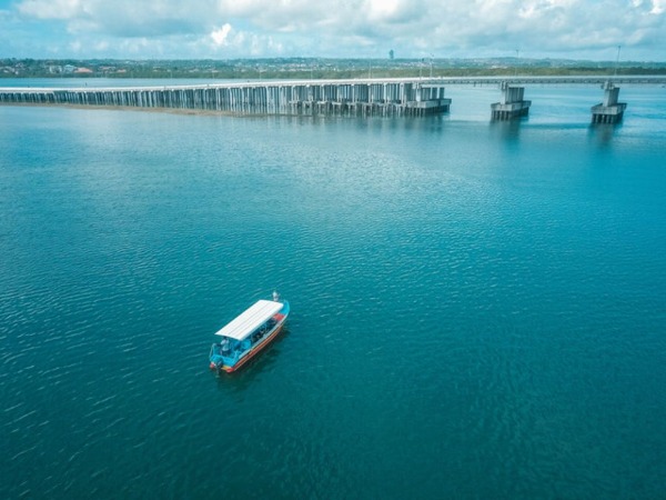 バリ島のランドマーク、TOL(海上高速道路)の高架下を横断する迫力のルート。