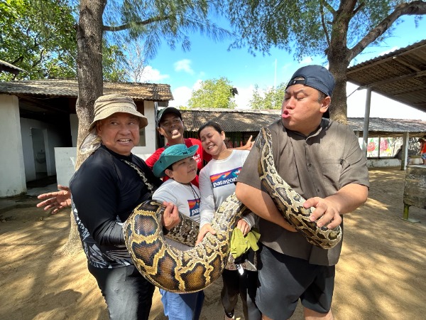 まずは魚の餌付けとシュノーケリング。熱帯の魚と泳いだ後は、マングローブの森へとクルージングします。