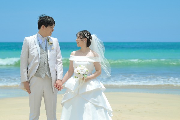 実際に挙式をされないカップルでも、「せっかくだからチャペルで写真を撮りたい」と選ばれる方が多いんです。まるでプライベートウェディングをしているような気分が味わえます。撮影後はそのままリゾートの庭やビーチへ移動して、開放的な雰囲気の写真も残せるのが嬉しいポイント。チャペルの厳かな雰囲気と、海辺のリラックスした雰囲気、両方を楽しめる欲張りなプランです。ハネムーンの記念にもぴったりで、「チャペルとビーチ、どっちも諦められない!」というカップルにおすすめです。