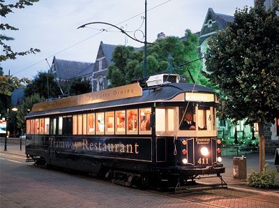 町中を走るレトロなトラムの中がレストラン!日中は市街地を巡るトラムの路線を使って、19時過ぎぐらいから食事が楽しめるトラムレストランが走ります。約2時間30分の間、ワインとともに楽しむ3コース(前菜、メイン、デザート)メニューは、レストランの食事とはちょっと異なる特別な雰囲気。3コースの前にはウェルカムドリンク、さらにスターター、食後にはデザートともにコーヒーまたは紅茶を提供。人々が行き交う市街地中心部の様子を車窓に見ながら本格的なコース料理が楽しめます。乗り場は、トラム停留所1番(Cathedral Junction)で、3~10月は19時スタート、11月から2月までは19時30分スタート。10分前には現着のこと。事前予約が必要です。