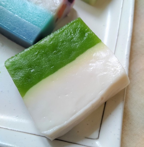 緑のパンダンリーフの部分はういろうのような食感で、甘すぎず苦味もあって、