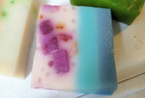 紫さつまいもやタロイモの角切りに透明なサゴが入っています。