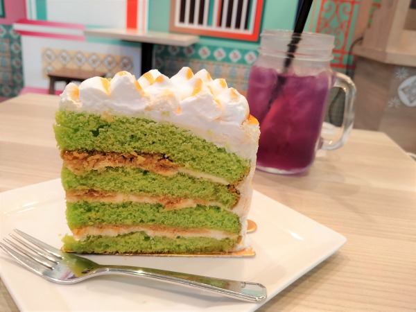 スポンジはパンダンのふわふわのシフォンケーキ、そしてココナッツクリームを使用。