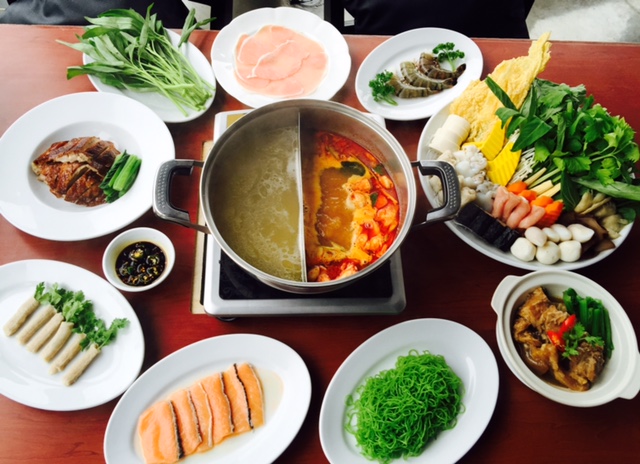 さまざまな具材を楽しめるタイスキ。コカではオリジナルスープとトムヤムスープの2種類を味わえるコースも。
