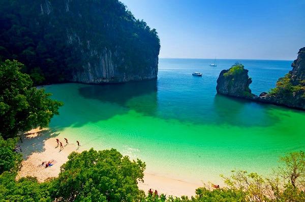プーケットの対岸、本土側の小さな町クラビは、何にもしたくない派にはぴったりのリゾートタウン。海と白いビーチでゆったり過ごすならパンガー湾に浮かぶ、ホン島を訪れてみては。ホン島は、いくつも浮かぶパンガー湾の離島の中でも、透明度の高く深い海と、神秘的なラグーンで知られています。青い海と空とビーチを楽しみたいというリゾート派におすすめの小さな離島、ホン島の魅力をご紹介しましょう。