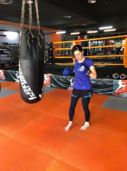 スタンダードなストレートパンチや、脇腹を狙うフックパンチ、肘を前に突き出すエルボー等種類もたくさん。あんなに簡単そうにやっているのに、自分でやってみるとそううまくはいかないものなんですね。サンドバックをつかってのキックの練習はテンションも上がります。
