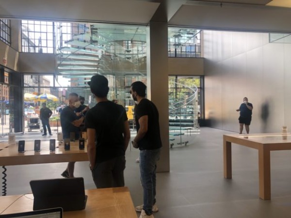 さて、すでにリオープンしているアップル・ストアですが、現在もアポイントがないと入場できません。ウェブサイトで商品購入後、アポイント時間を設定します。店舗に到着すると列ができていました。入場前には検温があります。張り切ってレンタル自転車で向かったところ、体温上がってしまって今の状態だと入店させられないと言われ再検査をする羽目になりました。(思ったより厳しい~!)