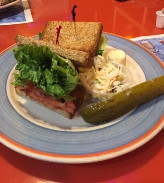 おっと、Good Stuff Dinerは開店してました!いつもサーブしてくれるお兄さんもいました。皆さん元気で良かった。ただし店内飲食できないので屋外特設のテーブルに座ります。そして早い、うまい、安い(どこかで聞いたことがあるような?)三拍子そろった大好物のBLTサンド!