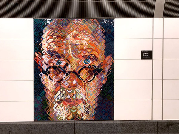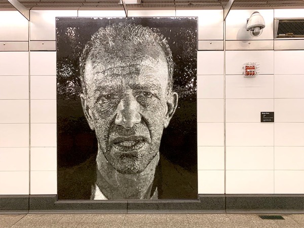 Qラインの86th Street駅では、アメリカ人のフォトリアリズムの巨匠、チャック・クロースの作品がフィーチャーされています。チャック・クロースは、写真の様にリアルに描いた巨大なポートレートで有名です。