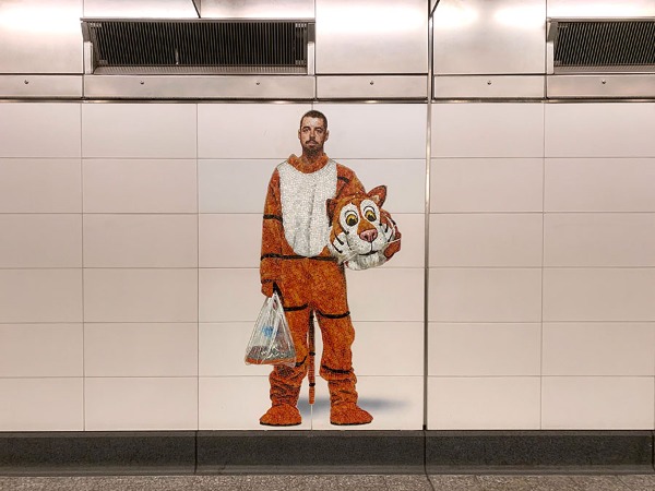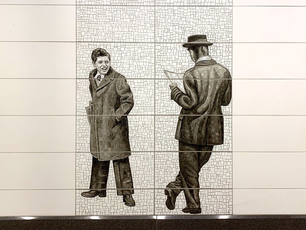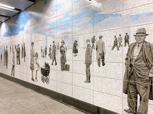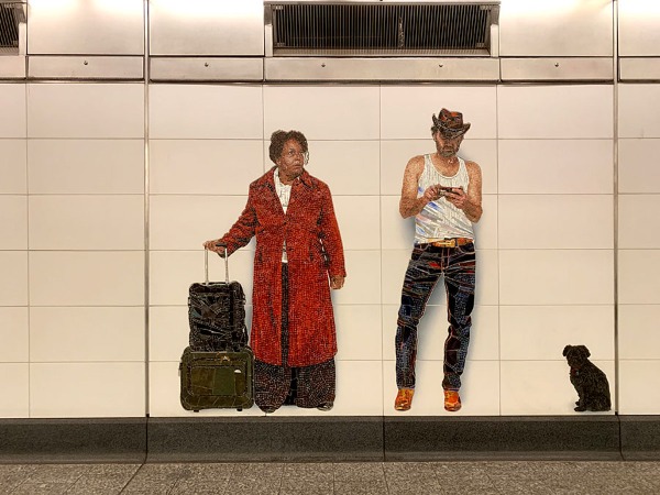 Qラインの72th Street駅では、ブラジル出身のアーティスト、ヴィック・ムニーズの作品が見られます。ニューヨークで日々見かけるニューヨーカーを描写したモザイクアートです。ニューヨークは世界各国でから訪れる観光客や、移民をしてきた人、ビジネスで訪れる人など、街中は多国籍の人種で溢れています。描かれた人たちは、服装も、人種も、職業もみんなバラバラで、世界各国から様々の人が集まった街、ニューヨークらしい作品です。