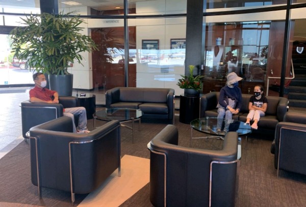 送迎車両も貸し切りです!車内には飛沫防止のアクリル板を設置