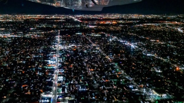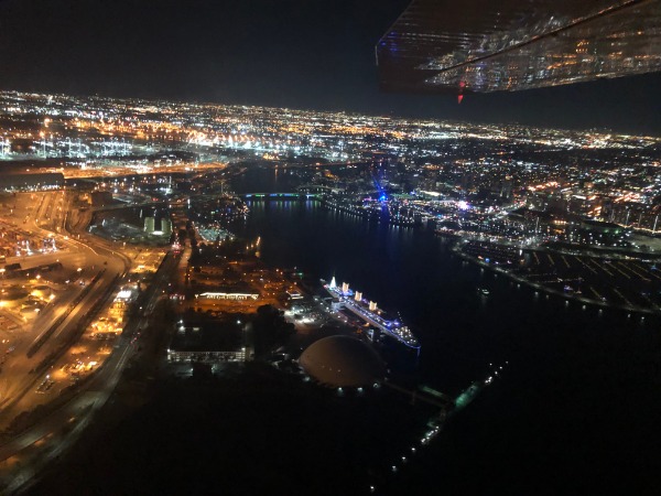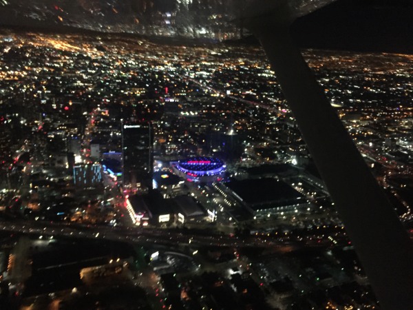 飛行機に乗ったら、あとは周り一面宝石のように輝くロサンゼルスの夜景を、存分にお楽しみください。