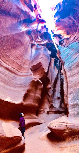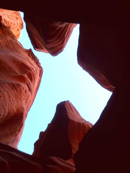 一歩入って上を見上げると...ここがアンテロープキャニオンXと呼ばれる理由が一目でわかります。