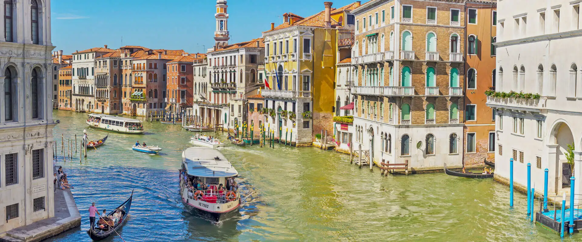 海に連なる潟湖(ラグーン)上に栄えて来た都市で、水の都として世界的に知られる観光地。大運河をはじめ100を超える運河が町全体に網の目のようにはりめぐらされている。