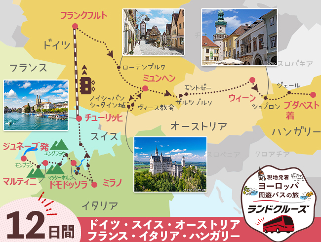 ジュネーブ 現地オプショナルツアー 閉じる 人気ワード 九ふん 天使の海 ダイヤモンドヘッド マウナケア アトランティス ホノルル クアロア牧場 コッツウォルズ 世界遺産 野球観戦 ナイアガラ 検索条件を指定する 参加日 参加したい期間でツアーを絞り込むことができます。※空席状況はツアー詳細にてご確認ください 参加日未定 出発地 エリアを選択 アジア アメリカ・カナダ・中南米 ハワイ グアム・サイパン・パラオ ヨーロッパ オセアニア 中国 国・地域を選択 フランス イタリア イギリス(英国) アイスランド エストニア オーストリア オランダ ギリシャ クロアチア スイス スウェーデン スペイン スロバキア スロベニア チェコ デンマーク ドイツ ノルウェー ハンガリー フィンランド ベルギー ポーランド ポルトガル モナコ ラトビア リトアニア ルーマニア ロシア ルクセンブルク ボスニア・ヘルツェゴビナ 都市を選択 グリムゼル峠 グリンデルワルト ジュネーブ チューリッヒ ツェルマット ベルン モントルー マルティニ ルガーノ カテゴリー 日数 ツアーの日数で絞り込むことができます(日帰り~最長30日) 日帰り 30日 日帰り-30日 行きたい都市 9件 のツアーがあります。 おすすめ順 売れ筋 安い順 高い順 ジュネーブ発 スイス周遊ハイライト3日間(ID : 2608309) ヨーロッパ周遊ランドクルーズ!スイスの絶景ツアー。ジュネーブ、マルティニ、 チューリッヒなどを訪問。1名様から催行、充実した周遊の旅をお楽し... 3日間 ジュネーブ発 チューリッヒ着 163,540円 ジュネーブ発 スイス名峰周遊A 最後チューリッヒ2泊 7日間(ID : 2506816/260681... ヨーロッパ周遊ランドクルーズ!スイスの絶景ツアー。 ジュネーブ、マルティニ、ツェルマット、マッターホルン、フィルスト・クリフウォーク、ドモド... 7日間 ジュネーブ発 チューリッヒ着 310,080円 ジュネーブ発 スイス周遊とミラノ・ベネチア・ローマ 9日間(ID : 2506838/2606838... ヨーロッパ周遊ランドクルーズ!ジュネーブ、マルティニ、ツェルマット、マッターホルン、ドモドッソラ、ミラノ、ベネチア、ローマ/コロッセオなどを... 9日間 ジュネーブ発 ローマ着 372,470円 ジュネーブ発 スイス周遊 ミラノまで 5日間(ID : 2506818/2606818) ヨーロッパ周遊ランドクルーズ!スイスの絶景ツアー。 ジュネーブ、マルティニ、ツェルマット、マッターホルン、ドモドッソラ、ミラノなどを訪問。1... 5日間 ジュネーブ発 ミラノ着 233,410円 ジュネーブ発 スイス名峰周遊B 最後チューリッヒ3泊 8日間(ID : 2506817/260681... ヨーロッパ周遊ランドクルーズ!スイスの絶景ツアー。 ジュネーブ、マルティニ、ツェルマット、マッターホルン、フィルスト・クリフウォーク、ドモド... 8日間 ジュネーブ発 チューリッヒ着 344,760円 ジュネーブ発 スイス周遊とフランクフルト・ミュンヘン9日間(ID : 2606843) ヨーロッパ周遊ランドクルーズ!ジュネーブ、マルティニ、ツェルマット、マッターホルン、ドモドッソラ、ミラノ、チューリッヒ、フランクフルト、ロー... 9日間 ジュネーブ発 ミュンヘン着 351,560円 ジュネーブ発 スイス周遊とデンマーク・ノルウェー9日間(ID : 2606880) ヨーロッパ周遊ランドクルーズ!ジュネーブ、マルティニ、ツェルマット、マッターホルン、ブリーク、チューリッヒ、コペンハーゲン、オーフス、スタバ... 9日間 ジュネーブ発 オスロ着 447,780円 ジュネーブ発 スイス周遊とフランクフルト・ケルン・アムステルダム 9日間(ID : 2506845/... ヨーロッパ周遊ランドクルーズ!ジュネーブ、マルティニ、ツェルマット、マッターホルン、ドモドッソラ、ミラノ、チューリッヒ、フランクフルト、ケル... 9日間 ジュネーブ発 アムステルダム着 355,470円 ジュネーブ発 スイス周遊とフランクフルト・ミュンヘン・ウィーン・ブダペスト12日間(ID : 260... ヨーロッパ周遊ランドクルーズ!ジュネーブ、マルティニ、ツェルマット、マッターホルン、ドモドッソラ、ミラノ、チューリッヒ、フランクフルト、ロー... 12日間 ジュネーブ発 ブダペスト着 459,680円 カテゴリーから探す 観光ツアー ランドクルーズ・周遊...
