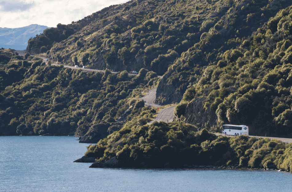 ニュージーランド南島の都市間を走る長距離バスGrayLine。クライストチャーチを出発後、テカポ湖、善き羊飼いの教会、マウントクックを経て、クイーンズタウンへ行くバス旅行です。大型バスで、バス内にトイレもあるのでゆったりお過ごしいただけます。現地をよく知るベテランのドライバーガイドが皆様のご旅行をサポートします。
