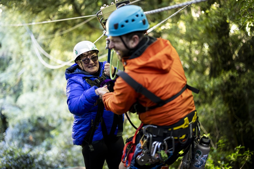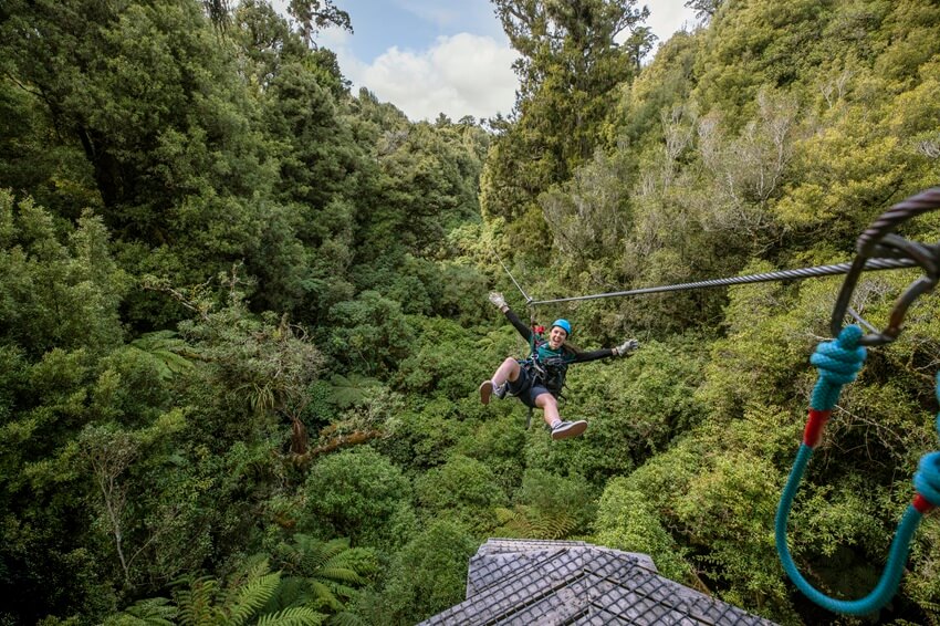 ロトルア市内から約15分ほどのところにある森林の中で、ジップライン体験!ターザンのように、木と木の間をすり抜け、ロープを滑り降ります。最長で220mのジップラインはとても爽快なアクティビティです。自然が豊かなニュージーランドならではのアウトドアアクティビティを体験してください。