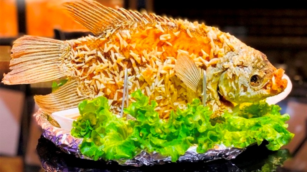 | 12:30 | レストランでメコン名物料理の昼食(象耳魚やボール状の揚げ餅など) |